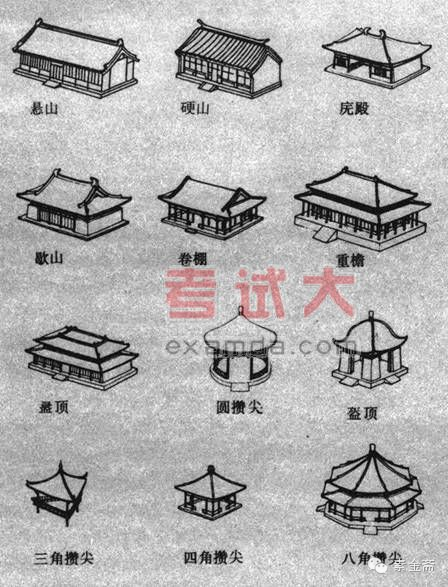 中国古代的匠师很早就发现了利用屋顶以取得艺术效果的可能性。《诗经》里就有“做庙翼翼”之句。三千年前的诗人就这样歌颂祖庙舒展如翼的屋顶。到了汉朝,后世的五种屋顶——四面坡的庑殿顶,四面、六面、八面坡或圆形的攒尖顶,两面坡但两山墙与屋面齐的硬山顶,两面坡而屋面挑出到山墙之外的悬山顶,以及上半是悬山而下半是四面坡的歇山顶——就已经具备了。可能在南北朝,屋面已经做成弯曲面。檐角也已经翘起,使屋顶呈现轻巧活泼的形象。结构关键的屋脊、脊端都予以强调,加上适当的雕饰。檐口的瓦也得到装饰性的处理。宋代以后,又大量采用琉璃瓦,为屋顶加上颜色和光泽,成为中国建筑最突出的特征之一。