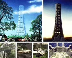 空中之城1000(SkyCity1000)是一座3280英尺(约合1000米)高的城市,整座城市可以实现自给自足,最早在1989年由Takenaka公司提出,以帮助恢复东京城市交通拥堵地区的绿地。如果Takenaka公司解决东京交通问题的方案最终通过,我们也许会看到一座完全符合构想的城市在东京拔地而起。空中之城1000由14个玻璃层保护的平台构成,占地面积达到3.1平方英里,将拥有大片的绿色空间。 东京千年塔 日本东京千年塔高2755英尺(约合840米),外观呈现圆锥形,1989年是由福斯特建筑事务所最早提出,用以解决东京开发用地短缺和人口过剩问题。按计划,千年塔(MillenniumTower)将建在距东京湾1.2英里处的海岸边,有170层楼那么高,占地面积0.4平方英里,可用于商业和居住。千年塔可以容纳6万人,有一条高速地铁网,每次载客量为160人,保证当地居民正常出行。千年塔每隔13层都设有一个交通中转站,公交系统连接这些交通枢纽,乘客可在这些中转站上下车,或转乘电梯和移动人行道。千年塔的风力涡轮机和安装在上层的太阳能电池板可以为整栋建筑提供可持续能源,是目前提出的最环保的理想城市设计方案之一。