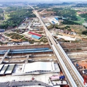 江西上饶站,合福(高架桥上)与沪昆高铁高度相差20米