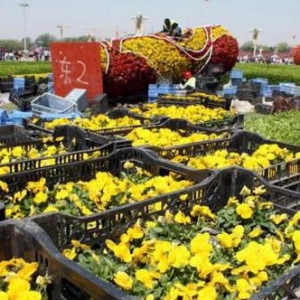 天安门广场东侧花柱之一已经布置完毕花球的花材主要采用多种颜色的非洲凤仙。为体现节约环保理念,同时保证花卉观赏性,花坛的花卉将采用滴灌技术。记者在现场看到,栽种花卉的花盆含有海绵材料,这样既能为花卉保存水分,又保证不会出现水流街面的情况。 此外,这位负责人还表示,为配合9月3日纪念抗日战争胜利70周年活动,届时还会推出以“抗日战争”为主题的花坛设计。同时,今年国庆花坛可能将延续抗日主题,不再重新设计。天安门广场施工中的“五一”花坛吸引了游客的眼球,游客们纷纷驻足与花卉合影,春日里天安门广场因为这美丽的花坛变得更加热闹非凡。
