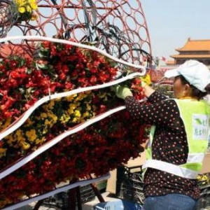 北京天安门广场“五一”抗日主题花坛显形!