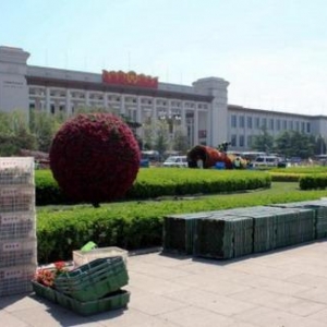 天安门广场东侧整齐摆放着箱子和框