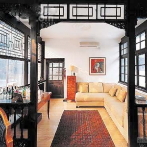 改造时先把墙拆了,收好每一块砖瓦,再按老照片重新砌好,有缺漏的地方就补上样子相同的砖,院子里所有砖墙都是这样修补的。整个墙体在彻底改造之后焕然一新。建筑的外立面是改造的重点。人们在很多保留下来的四合院里会经常看到用的较多的朱红色,且雕龙画壁,其实在真实的历史中,大红大金的颜色只出现在皇家的宅院里,寻常的书香门第、百姓人家都是用灰色或暗红色来漆自家的门、窗、墙,这也是北京旧城里的主色调。 Robim注意到了这个问题,在院落的色调处理上一再叮嘱工人要上做过磨旧处理的漆,不可用朱红色,大门保持原样,勿做翻新和涂漆。房子的梁和柱也是一样,做过除虫防潮处理后,仅涂上一层仿旧的暗紫色漆,原来的的玻璃窗换成了保温窗,卫生间、浴室和厨房都足以应付任何高品质生活的需要。 在布局上,一进大门是一溜侧房,这里被安排为洗衣房和清洁室,尽头的小房间用作储酒室。进入第二进院落,四方院子里的白果树保留。正厢房是主人的工作室和卧室。东侧厢房做厨房和餐厅,西侧则为会客室。传统的四合院无法容纳现代餐厅的格局,用玻璃顺着厢房尽头搭出一个见方的空间,布置成开放式厨房,并与厢房内的餐厅连贯,这样一来,餐厅和厨房的采光和排烟在玻璃篷的帮助下,得到了明显改善,使用起来十分方便。玻璃篷的用处体现在厢房之间的衔接,在房间的间断处,用玻璃篷连接,从而形成连贯、通透、保温的良好效果。