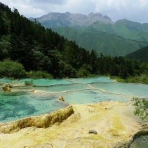 秘鲁的马丘比丘城8、中国四川五彩映池 位于中国四川的黄龙风景区的脊状坡地上,除了金沙铺地的美景,还有五彩映池的奇观。