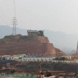 2014年8月5日,四川宜宾市翠屏区“钉子户”周围的建筑工地。 |