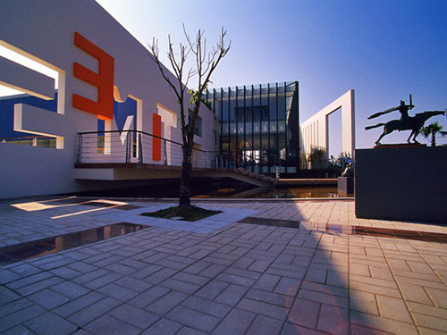 中国中央电视台新楼 中央电视台新楼方案竞赛,以库哈斯的新颖方案脱颖而出而告终。方案的独特形式使人惊呼:“不懂建筑了!”这的确是一幢可以改变人思想的建筑-----它突 破了我们对建筑的理解。或许有人说,在多震区建造这样的一个形体,是多么的不经济啊----但央视50亿的预算已放在那儿了。也许有人说,这种形式每个学 过构成的人都做得出来啊----但历史似乎总是证明,给予总垂青于有见地的先行者。这里,不拟对该建筑作深入的评论,只以此为例,分析库哈斯的创作个案。 与以往从功能上进行反思不同,库哈斯在央视方案中从形式逻辑的角度入手进行分析。库哈斯认为,在摩天楼的创作中,“大多数只是按照预先的方式进行布置,在 其中进行的只是惯常的活动。”他洞察到,摩天楼创作中“裙楼----中部韵律布置----顶部”这种模式已成为定式,应该有新的创作逻辑与思路。同时,在 对摩天楼高度的认识上,他认为不必“参与对终极高度的无谓竞争”,而应建造“具有象征意味的建筑群”。 基于对建筑形式和建筑高度两方面的认识,库哈斯创造了一个环状的形式----一个在竖直方向呈6度斜角的方状环形.这种造型既从形式上化解了传统的三段式 模式,还设计出一种新的上下贯穿一气的形体。从动画上来看,建筑在竖直方向上确有一种进深感,这种进深感大大区别于以往摩天楼“高耸入云”的形象。旧建筑 的搭建形式来看,比之德方斯拱门和原广司的东京大楼,这幢建筑更具水平方向的立体感;比起艾森曼的环形大厦,则更显出纯净感和现代感。这幢楼也延续着库哈 斯的某些一贯手法:倾斜的玻璃幕墙、现代建筑的体块感及不大的高宽比例。相应的,它对环形形式与“促进团结、加强协作”之间关系的说明,则明显的缺少建筑 上的说服力。同时,它出现在北京这样一个古都中,和以往的建筑形象有着极大的不调和性。多少使我们对北京未来的城市形象多了一层疑惑----我们的北京是 否会变得如库哈斯所说的“拼接城市”呢?如果这样,这座建筑也许将会成为拼接层次中最为新奇的一个片断。应该说,这幢建筑不仅是库哈斯的一项建筑实践,更 是其城市理论在北京的实验。