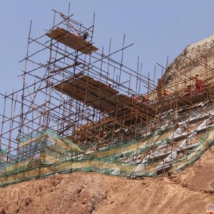 隧道工人正在半山腰搭建工作台