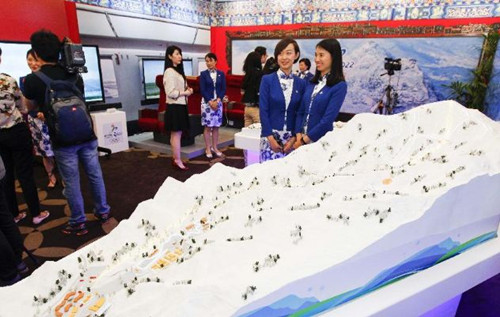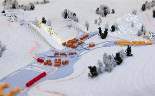 国际奥委会9日在奥林匹克博物馆举行2022年冬奥会候选城市与国际奥委会委员之间的陈述交流会,同时要求候选城市设立展示咨询室,10日接待国际奥委会委员和全球媒体的咨询活动。图中为北京和张家口赛区的沙盘局部。