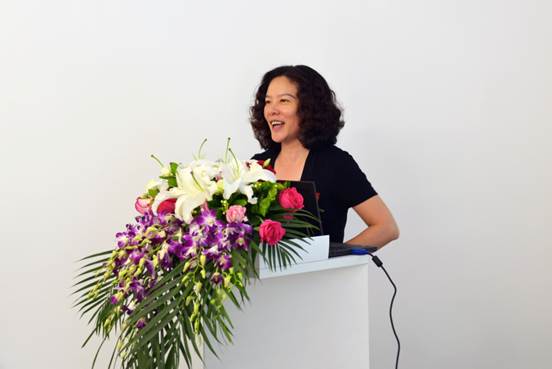 陈静勇老师开幕致辞 中国建筑设计院有限公司环艺院院长史丽秀女士在致辞中谈到:今天活动就是一种设计企业与教学的跨界,通过学术沙龙的交流平台有更多的互动,站在不同角度看问题,站在更高的高度上把行业做好。