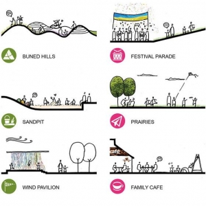 Ivano-Frankivsk城市儿童公共空间作品名称:「CHILDRENUTOPIA」2015乌克兰国际竞图Child-friendlypublicspace首奖 作品位置:乌克兰Ivano-Frankivsk 建筑师/设计者:PENGARCHITECT张朋千建筑设计谘询(上海)有限公司 设计团队:张朋千PengChienChang,黄紫渲ZiXuanHuang,陈佩汝PeiRuChen 历史上,Ivano-Frankivsk城市的初始,为阻挡外敌入侵建立了著名的Stanislaviv堡垒。之后,为增强防御工事而将它扩大;战争后,丧失功能的堡垒被拆除,城市向外扩张,发展到现在历史保护区的规模;随着工业时代的到来,建设的铁路是城市对外的主要交通枢纽,刺激城市高速发展,城市向西边沿铁路扩展蔓延。 营造好的儿童公共空间,需要有一个健康有序的城市环境。Ivano-Frankivsk面临很多城市问题。在公共空间上,它们分布分散,缺少户外休闲活动空间、集散空间、休憩空间、安全停留空间;在交通上,多种流线混合、紧张的交通运输、缺乏停车空间;在城市活动方面,节庆活动及人流的空间需求、季节性及假日的自发性贸易(跳蚤市场)的空间需求;在设施方面,城市文化娱乐设施集中分布于老城区,并缺乏公共服务设施、绿地景观、垃圾回收区等。对于儿童,城市中欠缺儿童的活动交流空间和安全的娱乐设施,且儿童的空间流线与其他人流混合,不能满足各年龄层儿童的活动需求。 儿童“友善”空间不仅是对儿童的友善,也是对市民和城市的友善。即它是在舒适的距离儿童和市民可以安全并易于到达的,它可以满足不同年龄段的儿童不同目标的活动需求;它也与城市环境相融合并补足城市公共功能。儿童的年龄定义是0~12岁,他们每个年龄都有各自的特点。0-2岁,需要成人辅助活动,感知力强;3-5岁,在成人的看护下活动,喜欢模仿和体验;6-7岁,成人视线范围内自己活动,个体表达强烈;8-12岁,可独立活动,积累文化信息。因此,各年龄段的儿童有不同的行为特点和需求,透过与城市的周边环境区位结合,产生出多样的儿童友善空间。 我们将各具特色的公园以友善可达的方式连接,不仅儿童可以体验各个公园,还让新旧城区形成一个整体,把城市文化设施都串联起来,使得分散各处的城市资源得以共享,并能便捷到达。同时,这样的发展使得公共空间的服务范围不只是从公园而是从整个串联空间向外辐射,作为交通串联的城市空间也会被激活,从而促进了城市的发展。友善空间串联的模式的应用不仅限于目前五个基地,它可以应用于城市其他地块,进而串联起来形成网络。这种模式的蔓延,促进并激发城市发展,让Ivano-Frankivsk的历史迈向新的阶段。