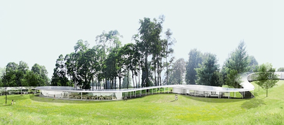 据报道,总部设在美国康涅狄格州新坎南(New Canaan)的格雷斯农场基金(Grace Farms Foundation)最近宣布,它将在10月9日正式开放它的新的综合设施。![]() 目前,这个团体的接近完工的在75英亩农田上的装置,是一个86,000平方英尺的建筑。这个项目由普利兹克奖获得者——日本的SANAA建筑事务所设计。 ![]() 这个名叫“河流”的项目,是一个长度为1,400英尺的“亭架”。它蜿蜒曲折地通过了起伏的地面。这个由玻璃、木材和钢材构成的荚状建筑,容纳了餐厅、室内剧场和健身房。它们基本上处于一个单一的屋顶下。 ![]() 格雷斯农场基金会将把这个设施作为很像一个自然保护项目和旅游胜地来经营,举办诸如电影放映、新书签售和讨论会等活动。 ![]() 这个项目的周围的景观,由费城的OLIN公司与SANAA建筑事务所合作设计。这个项目将有向公众开放的步行道、野餐区和特定的艺术品。还有由声音装置艺术家苏珊-菲利普斯(Susan Philipsz)设计的音响装置和由灯光艺术家奥拉福-埃利亚松(Olafur Eliasson)设计的灯光装置。 |