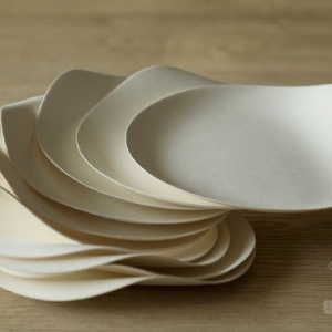 这个系列作品是日本 Shinichiro 设计工作室设计制作的一次性纸质餐具。各式各样的餐具设计简约而不简单,都拥有非常优美的曲线,质感鮮明。据了解这套餐具全部采用可完全生物降解的材料制成。
