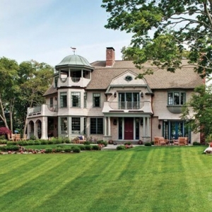 这是一栋精致漂亮的住宅,绿绿的草坪犹如电影画面里的一样。