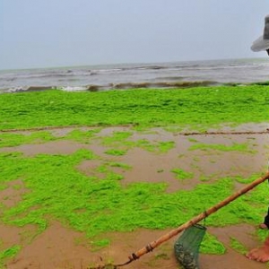 摘要: 摘要: 2015年7月6日,山东省日照市山海天旅游度假区两城街道沿海海滩,当地渔民在堆满浒苔的沙滩上挖蛤蜊,一片片绿色的浒苔被海浪涌到沙滩上,渔民犹如在“草原”上赶海。 ...