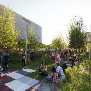罗马GreatLand景观装置设计该装置的内部有着大量的植被,都为当地乡村的本土建筑,地面上则铺设了大量丰富多彩的野餐布。而这些植被则通过其中固定的和隐藏的喷嘴来进行灌溉,还有家具提供给游客使用。装置中还有一个舞台用以举办夏季YAP节的活动。科尔特大学的项目之所以被选中,主要是因为其项目自身的清晰的与功利主义的抽象相匹配,能够提供给城市文化公园。 该项目中不但设置了野餐区,其绿化还与当地最近正在MAXXI展出的“FOODdalcucchiaioalmondo”(食品世界)主题展览的公共空间有着相关的联系,不但成为了概念简约到位的建筑,还成为了当地温柔的小景观,向人们传达着艺术的即时性。