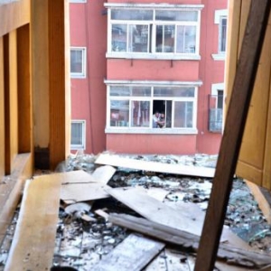 事故发生后,由于五楼和六楼阳台煤气管道损坏,燃气公司工作人员赶到现场将总阀门关闭。昨日下午,据阳台坍塌的住户介绍,由于房屋已经无法居住,社区方面给住户出钱暂时先安置在旅店居住。在事发小区内,许多居民表示不敢再回家居住。有居民看见阳台与楼体之间断裂的部分之后,提出质疑:“楼板里面看不见粗钢筋,这楼能结实吗?”在该楼四单元四楼一位居民家中,地面多处瓷砖出现裂缝。 |