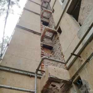 五层违章建筑搭起成串外部框架17日,在拆违现场看到,除一楼住户是独立外扩,二至四楼住户扩建的钢架结构“吊脚楼卫生间”已初具雏形,样式、平面整齐划一,无缝对接,自下而上相互承重、相互依存,形成了一个“串串”。每一层的构筑物面积大约6平方,据说是要建成一个独立卫生间,而构筑物所处的位置是房屋外墙的一扇窗户旁边,如果建成住户需要自己打通墙壁,开出一扇门就可进出。 据了解,五户居民都是多年的老街坊,相互熟悉。由于社区房屋建于上世纪70年代,排水设施老旧,卫生间较小,经常堵塞漏水,在一次偶然交流中,其中两户居民产生改造的想法。筹划过程中,他们担心楼上楼下居民有意见,于是又征求同一单元其他楼层住户意见,发现大家都有类似问题,于是一拍即合,几次商量下来,就决定了统一扩建。恰好社区里有一租住户,是搞建筑工程的,也算是个熟人,找他施工费用也低些,一切都非常快捷地敲定下来。 “这处违建是周边居民看到建设过程,感觉极不安全,向城管部门举报发现的。”城管部门黄科长介绍,“每户吊脚楼的底板都是混凝土的现浇板,每一块都有一吨多重,而且按照设计还要添加砖石外墙,每层整体重量约5吨。由于房屋房龄较老,且‘串串吊脚楼’地面无支撑,部分钢架结构强行镶入楼体承重墙,最深处约1.8米,较浅的地方仅十余厘米。” 据了解,街道请来房地部门鉴定后,认为存在严重安全隐患,可能下一场大雨,刮一阵大风,就会将整栋楼的墙体“撕裂”。城管人员调查得知,居民房屋老旧,的确存在下水道堵塞、漏水等问题,于是承诺,在拆除后,帮助居民改造下水设施,一定程度解决生活不便。 |