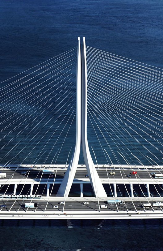 扎哈赢得台湾淡江大桥设计权 Zaha Hadid建筑事务所在台湾淡江大桥设计竞赛中获得冠军,将和中兴工程顾问公司及德国厂商共组团队合作完成淡江大桥的建设。 等了20年,去年10月已办理开工典礼的淡江大桥设计评选终于出炉,由欧美及亚洲等6组国际知名桥梁工程团队竞图角逐,公路总局宣布,由中兴工程顾问公司与德国厂商共组团队提出单塔斜张桥桥梁造型得标,设计团队为Zaha Hadid建筑事务所,结合台湾本土代表的云门舞集纳入设计,光影宛如舞蹈者跃起的舞姿,并融合淡水夕照美景,2020年完工通车后将成台湾新地标,届时淡水到八里可缩短15公里路程,节省25分钟车程。 建成后淡江大桥将永传千古,设计年限为120年,设计理念是替淡水增色,替台北增色,构想采自于云门舞集的舞蹈,光影的流动就是舞者的流动,代表台湾的跃升,且云门舞集是台湾文化的代表,另桥台设计是双手合十代表祈福,祈福台湾更祥和更美好,淡江大桥也会替夕阳增色,将成台湾新门户、新景观外,更将是世界上最长的单塔不对衬斜张桥450公尺,将来将与「淡海轻轨捷运-八里延伸线」共构,为全台首座公路与轻轨系统共构的桥梁。 Zaha Hadid事务所表示,淡江大桥未来将预留自行车道和夕阳观景台,淡水端联络道下将设有公园,步行约10分钟可衔接到渔人码头,设计上也考量环保,减少落墩以及对挖仔尾湿地的冲击。为设计淡江大桥,研究淡水夏季和冬季的落日,Zaha团队还到淡水沪尾炮台观察当地环境,也曾非正式拜访过云门舞集,此次是首度设计台湾公共基础设施。 |
