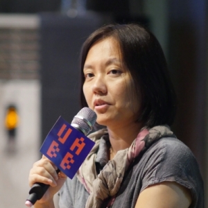 马岩松在2015深双北京推广会上分享自己在深双的参展经历马岩松同样分享了自己此前三次的参展经历,从2009年市民广场的“怪物脚印”、2011年的街道项目,到2013年的“山水·城市·综合体”,展览作品一直在探索建筑与城市的关系。今年的作品根据深圳前海目前围海造田以及水污染等现状,带来了“未来海上森林岛”的设想,提出通过散步道网络连接公共艺术空间。他表示,这是人类逃脱现代文明的乐园,亦是一种探索“城市原点”和返璞归真的尝试,希望可以通过这一作品使人们重新反思人类、建筑、城市和自然之间的关系。 下图:独立策展人侯唯唯在2015深双北京推广会上介绍今年“UABB学堂”——“一砖一瓦建深圳”大型公众互动活动