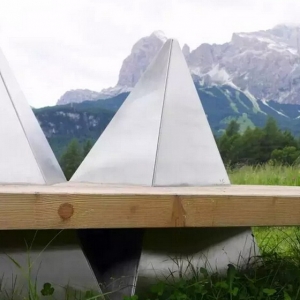 多山形长椅cimes设计该款作品模仿了意大利科尔蒂纳丹佩佐地区的地貌,有着形状各异的山坡。长椅将木头与金属相结合,突出了两种材料的特点,同时也反映了在高山环境之中石头与木头之间微妙的关系。