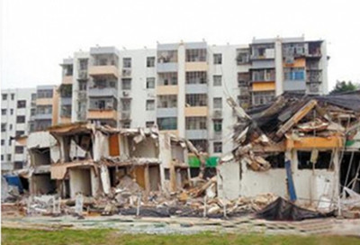 剁饺子馅“剁掉”阳台 2015年7月7日沈阳梧桐园小区发生楼体坍塌事故,7楼住户在家客厅好好地剁饺子馅,没想到7楼和6楼阳台整个掉到5楼。这几栋回迁楼2002年入住,至今楼龄只有13年。 5、坍塌事故"多米诺效应"