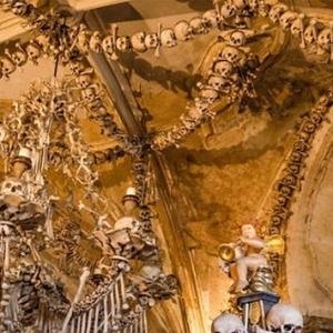 美国堪萨斯州的世界最大线球三、捷克骨头教堂 捷克布拉格的骨头教堂是喜欢惊险刺激的你不容错过的奇观之一。该教堂建于13世纪,坐落于布拉格郊区,据相关人士估计里面收纳了4000到7000多人的尸骨,他们中的大部人死于1318年的瘟疫和15世纪的胡斯战争。教堂的地板上,天花板上到处堆满了死人的头颅和骨头,阴森恐怖。