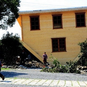 美国弗吉尼亚天生桥六、中国枫泾古镇倒置屋 中国上海金山区枫泾古镇中国农民画村的“倒置屋”,因房屋的结构奇特,屋顶朝下屋基朝上,内部所有家具也都是从顶部悬挂下来,自2014年开放以后,吸引了很多游客到此参观。