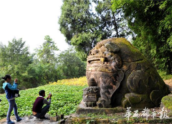 成都新机场发现“中国第一石狮” 鼻子已被刻字