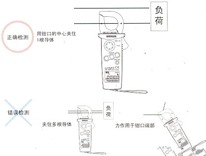 由于钳形电流表本身精度较低,在测量小电流时,可采用下述方法:先将被测电路的 导线绕几圈,再放进钳形表的钳口内进行测量。此时钳形表所指示的电流值并非被测量的实际值,实际电流应当为钳形表的读数除以导线缠绕的圈数。 测量运行中笼型异步电动机工作电流。根据电流大小,可以检查判断电动机工作情况是否正常,以保证电动机安全运行,延长使用寿命。