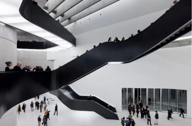 意大利罗马MAXXI博物馆设计着扎哈·哈迪德(Zaha Hadid)曾表示,该博物馆“并不是一个容器,而是一个艺术品营地”,在这里走廊和天桥相互叠加和连接,创造出来了一个具有生机的动感空间。
