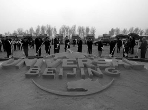 各方负责人一起为环球主题公园项目奠基 2013年立项的北京环球主题公园及度假区(亦称“环球影城”)昨天举行基础工程建设启动仪式,标志着这项总投资超过500亿元的全球最大环球主题公园进入基础工程建设阶段。根据规划,京哈高速和东六环将新建两座立交桥直通园区。环球影城预计于2020年建成开园。