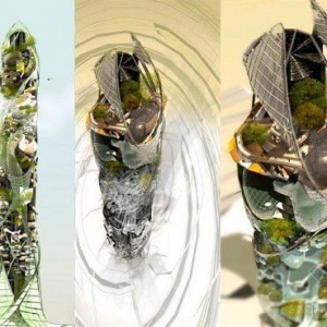 这个空心螺旋结构是对可持续的塔式建筑进行探索而设计出的一个新雏形,如果将来地球气温上升的幅度比现在已经上升的温度还要大时,那么这种塔式建筑可能将成为一种必需品。由于被包裹在一层由太阳能电池组成的薄膜里,所以这个螺旋塔能够产生足够的电能供自身内部使用;同时在塔的表面收集雨水,然后储存在地下蓄水池里。这个螺旋塔不仅其外形引人注目,而且它还通过可再生能源发电、雨水收集以及一种先进的冷却系统将住宅区、办公区、商业区与孩子的成长空间结合在一起。 |