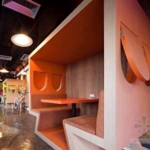 这是位于曼谷的盛世长城广告公司,不俗的设计让这个广告公司更具有活力,公司老总说,希望能让每一个员工痴迷上工作。新的办公室采用复古的质感和现代的家具创造了视觉的反差,每一天员工像游客一样的在工作环境工作,肯定不乏层出不穷的富有创造力的完美广告。