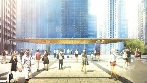 芝加哥苹果新旗舰店设计方案首次公开登载于《芝加哥论坛报》,该旗舰店将设有14英尺高的入口展馆,引导游客从密歇根大道进入销售楼层,同时欣赏芝加哥河的风景。一道“大楼梯”将为行人提供通往河畔的步道。