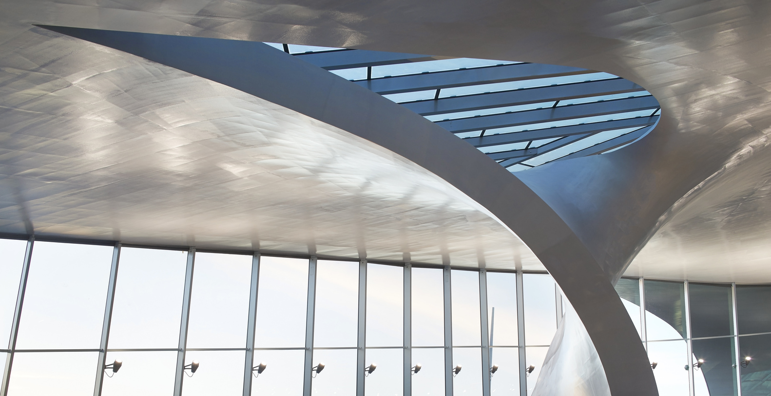 换乘大厅高 60 米,面积达到 1.8 万平方米。这个大体量空间展现出常见于 UNStudio 各个项目的特点:强调曲线和流动。建筑师没有选择传统的建筑结构,而是用扭曲的墙体和屋顶营造出一种戏剧化的效果,大厅内的天花板、墙体和地面都连接在了一起。 据说,这个设计受到德国数学家菲利克斯·克莱因提出的“克莱因瓶”启发。克莱因瓶有点像莫比乌斯环,它是个扭曲、闭合的曲面,没有边,表面也不会终结。另外,建筑师还以更轻的钢铁来代替了混凝土,而且建造方法是用在造船上的方法,这在过去同样规模的建筑上是从未有过的。