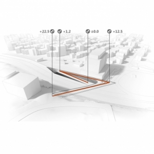 3rdSkinArchitects设计的哈冈尼人行桥哈冈尼人行天桥的设计以公路两边的高差为基础,且净空高度需满足机动车从下通过。在22米的高差存在的情况下,必须建有一条连续的且须在坡度8%时延伸250米的坡道。为了避免这种设计,这座桥被设计成分为三条坡道,形成一条“折叠线”的组合。