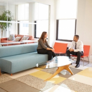2016年办公空间设计将出现哪些新趋势?随着无线办公的普及,员工们已不必被锁定在某一个座位上了。在未来,办公室将出现更多的休息空间,它们非常舒适,能让员工放松下来,促进员工间的聊天和协作。 趋势五:办公室的颜色会越来越丰富