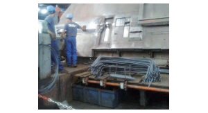 图7桥塔明挖基础3 BIM技术在钢筋工程设计中的应用 3.1 构件设计轻巧,配筋率高 3.2 钢筋工程的精细化设计,工厂化制造 钢筋加工按照业主要求,遵循法国的工程习惯,采用大直径钢筋,所有钢筋均采用工厂预制(见图8),现场拼装。施工现场不允许进行钢筋切割和弯折,所有钢筋的连接均采用绑扎搭接方式连接,这些因素都要在设计阶段充分考虑,设计重心前移,设计院的工作量大大增加。