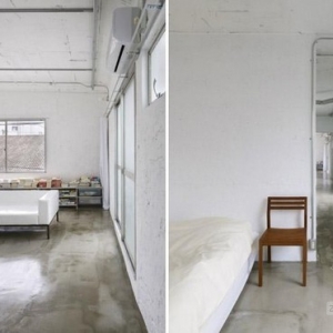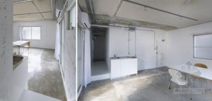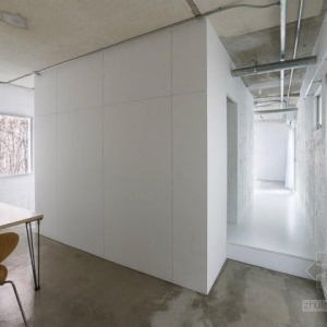 这个小工作室在一栋位于市中心的30年房龄中三层公寓里。每层4个房间,三层共12个房间。住宅和办公空间同时存在于这栋楼中。 改建时去掉了屋檐和阳台以及所有内饰,只保留了混凝土结构,并在每次做出一个宽敞的通道,将所有房间连接起来。 看起来就像是不断重复着的房间,但是建筑师希望打破12间客房和两个楼梯的先入为主的印象,让现有结构可以灵活的对应各种条件。 简单的漆上白色后的墙壁,满足了空间基本功能。建筑师期待着这个空间中发生更多的精彩转化。