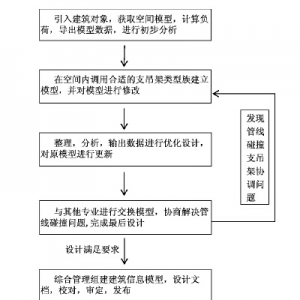 摘要:BIM技术在建筑机电工程中抗震支吊架斜撑安装空间预测,介绍在抗震支吊架建族过程中以光圈形式将锚栓的作用范围可视化,运用BIM技术的碰撞检测功能可以达到锚栓间距检测的目的。 以广州某大型项目为例,针对抗震支吊架安装中最为常见的侧向斜支撑安装空间问题,选择管线设备集中的地下二层核心筒走廊样板区进行了成品与抗震支吊架的深化设计。最后提出了将最下层横担延伸通过型钢底座与左侧结构墙进行生根、侧向支撑改为与横担一体的水平支撑和简化管线空间布排等解决措施。 0引言 BIM是当下的热门话题,以三维数字技术为基础,能对工程项目相关信息进行详尽表达。综合管线部分是机电安装工程中的难点,工具经BIM技术深化设计后的三维图导出安装节点图,不仅可以提高机电安装的精确性,还可以节省大量绘制抗震支吊架节点图的时间。BIM模型信息的完备性、关联性、协同性在建筑行业的应用,除了能减少工程成本并有效控制工程进度及质量外,还将为建筑行业的科技进步带来不可估量的影响。 抗震支吊架是以地震力为主要荷载的抗震支撑设施,对机电设备及综合管线可进行有效保护,其由锚固体、加固吊杆、抗震连接构件及抗震斜撑(侧向、纵向均为斜撑)组成。然而,由于抗震支吊架的安装基于建筑的机电系统,因其设备管线复杂、设计图纸信息不充分,以及其对建筑物的主体结构依赖性强,则后续安装时安装难度大,安装空间浪费。在BIM技术的带动下,抗震支吊架的深化设计能实现真正意义上的与周围空间环境的精确匹配,减少现场不必要的“打架”问题。 为了节约管线与抗震支吊架材料、增加建筑净空间和提高抗震支吊架安装的合理性,本文将对BIM技术在抗震支吊架模拟安装和综合管线进行碰撞检测方面展开研究。 1BIM技术在抗震支吊架斜撑和锚栓安装的运用 1.1斜撑安装空间预测 抗震支吊架的斜撑按其支撑形式可分为刚性支撑与柔性支撑两种。刚性支撑斜撑材料一般选择C型槽钢、镀锌钢管,因其同时能抵抗拉力与压力,从而一般以单边撑的形式存在;柔性支撑斜撑材料一般是钢索,只能抗拉力,所以必须以两边对称的形式存在。抗震斜撑按其作用功能划分,又可分为侧向支撑与纵向支撑,侧向支撑是用以抵御侧向水平地震力作用,纵向支撑是用以抵御纵向水平地震力作用。例如,管道同一点位,既安装侧向支撑又安装纵向支撑,其作用原理是在管道质心水平面上形成互成90°的4个方向上的支撑,水平地震力从任意方向作用,管道均受到保护。成90°安装的两个刚性支撑,因其同时具有抗拉压能力,所以能对管道作水平方向的保护;对柔性支撑,则须做水平面上互成90°的4个支撑。 因此,抗震支吊架对斜撑、吊杆的性能有更加严格的要求。特别是斜撑两端的抗震连接座更需要合理的设计,目前国际上最权威的的抗震检测机构是美国FM认证机构。斜撑上用以与结构体生根的锚栓不仅需要验算其拉拔性能,抗切能力也必不可少。斜撑安装的空间位置是最复杂的,对楼板板底,一般斜撑与垂直吊杆之间的角度宜为45°,且不得小于30°。角度区间分为:30~45°、45~60°和60~90°,角度的变化也会影响抗震支吊架能承受作用范围,进而改变其最大间距。 BIM技术的运用,能根据模拟的三维图纸了解每个支吊架斜撑的具体安装空间,结合管线综合技术从而在设计阶段就能确定每个支吊架的斜撑的安装方式与角度,再根据具体的支吊架形式能承受的实际荷载与角度确定支吊架应有的最大间距,给出确定的抗震计算书及可靠的产品选型验算过程。 1.2锚栓间距检测 对于锚栓的检测,首先确定锚栓的安装位置,运用点荷载绘图使结构的受力范围可视化,使锚栓之间保持必要的间距,保证锚栓性能有效性,避免对结构造成伤害。利用BIM技术,将每一个锚栓的力学作用范围表现出来,在三维图中为光圈,如图1所示。当作用范围不重合则表示锚栓力的有效性能达到结构的承载。反之,则对支吊架安装位置或者斜撑角度进行优化调整。抗震支吊架的族库建设过程中,可以把对应大小锚栓部分设计成为一个相应大小的光圈,从而在支吊架模型放置完成后,利用BIM的碰撞检测功能,检测出相应的锚栓碰撞位置,再做出相应的位置调整。 图1锚栓的力学作用2BIM技术在抗震支吊架系统中的运用 2.1BIM技术对于系统设计阶段的指导 抗震支吊架深化设计布置流程见图2[1]。首先,应引入建筑对象,反映建筑空间、结构、构件的位置关系。此外,BIM技术对于安装支吊架的后期材料统计带来的极大便利是传统CAD所不具备的,从材料数量的统计,到每一个支吊架类型的属性。基于Revit的插件如图3所示。基于BIM的材料管理不仅仅只是一个深化设计→预制加工→物流追踪→现场安装的物流管理流程,而是一个建造全过程的信息管理,譬如欧美的装配式支吊架流程:预埋件→过渡横梁→悬吊式支吊架[2],而预埋的位置是否准确更离不开BIM技术模拟与施工的结合。 综合管线布排应考虑暖通、给排水、强电、弱电、消防、机电等各专业安装的空间位置关系以及与装饰专业之间的关系,一般应遵循以下原则。 图2利用BIM技术建立支架系统的流程