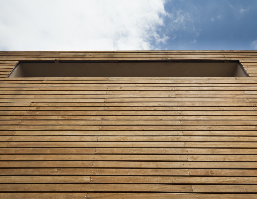 小屋的木质外观比较醒目,橱窗内还会展出学生们的作品,侧面采用玻璃建造外观,比较透明,加强了内外空间的联系。