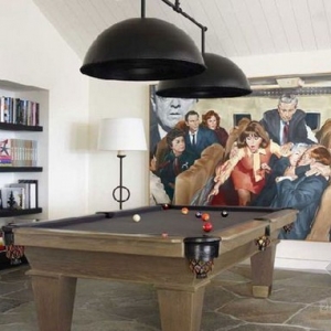 这栋豪宅位于美国 加利福尼亚州 马里布 豪宅的厨房就坐区有Minotti鸡尾酒桌,桌旁是由Haenisch,设计的沙发和扶手椅,还有Christian Liaigre设计的落地灯,Paul McCobb设计的凳子;墙上挂有Massimo Vitali拍的照片,地上铺着Rug Company出品的地毯。主厨房有CaesarStone出品的台面,Gaggenau设计的烤箱和冰箱,Franke设计的不锈钢水池;还有由Nessen Lighting设计的照明设备和复古酒吧高脚凳。 主卧里装饰品主要有定制的镀锌床头板和踏足板,Blackman Cruz设计的透明石膏床头柜,Deborah Sharpe Linens的寝具;还有George Nelson设计的双色调Swag Leg椅和DDC出品的地毯。卧室就坐区两用长椅上方挂着Matt Palmer的画,长椅上铺着Hermès盖毯,地上还有Rug Company的地毯。室外休息室石板露台上装有Christian Liaigre设计的靠墙桌;泳池里还注入了咸水。