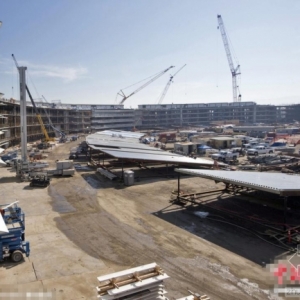 施工现场新总部将有大约80%是开放式的自然空间。拆除旧有的惠普建筑时,苹果也留下1000多颗成熟的树,準备重植之用。建筑面积达280万平方英尺(约26万平方米),周长接近一英里。环形玻璃建筑设计,大量的开放式座位区是为了鼓励之间员工进行交流。会议区和休息区总面积将达到83000平方英尺(约7710平方米)。整个建筑将使用超过3000块曲面玻璃。第一块玻璃已经安装完成,苹果熟悉设计官JonyIve称其为世界上最大的曲面玻璃。 |