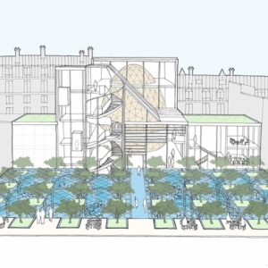 在审查小组评选后,英国建筑师戴维·奇普菲尔德为该场地设计的方案中选。 坂茂设计的重塑巴黎方案