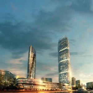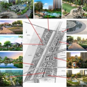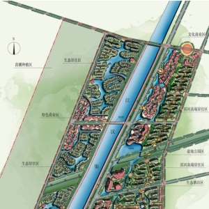 两轴——全区由“两轴”贯穿整个社区,利用江汉渠打造一条贯穿南北的城市蓝色生态轴线,东西向的港南渠形成次要景观轴线——作为生态概念设计的主要景观轴线,融入广场、绿化、小品等“开放式公园景观设计概念”,营造出自然、生态的景观环境。 八区——规划总体上分为八区。由东往西依次布置文化商业区、滨河高端居住区、湿地公园区、生态酒店区、高端商务区、生态居住区、特色商业区和高端学府区,打造一个集文化、生态、旅游、娱乐、购物、餐饮、酒店、会所等多元业态于一体的都市娱乐目的地。