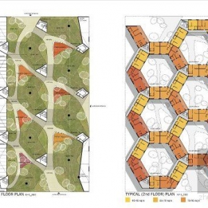 人类建筑的最大尺度是什么? 村庄的体验:我们的孩子在公园里玩耍,听到他们的声音以后,我们从窗户往外看,他们可以看见我们的脸。我们据此设想了一种建筑,有2、3、4层。这种高度也是树的高度,建筑中可以听见鸟叫,我们依然可以享受到自然。