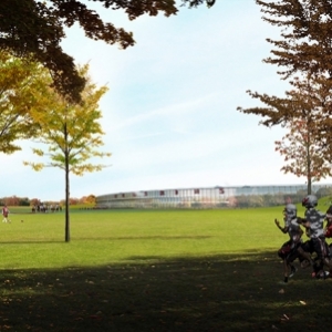 华盛顿红人队体育馆虽然该体育馆的确切选址尚未确定,但BIG已经公布了这个可容纳60000名观众的概念方案,该体育馆是一个透明的波浪状建筑,四周设有一条休闲娱乐的人工河道包围。水体、绿化将为人们提供赛前的休闲好去处。