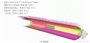 图2基于BIM的虚拟施工方案流程图3(a)展示了隧道4D虚拟施工过程,对超前支护、初期支护、仰拱填充和二次衬砌所有结构节点进行动态施工模拟。图3(b)展示了施工进度信息和横道图,对每个构件进行施工流水段、时间的定义。 从图3可清晰查看所有构件的施工顺序和时间节点,通过对比分析施工计划和实际施工进度的状态,便于项目管理者实时动态掌控施工进度,确定最好的施工顺序和时间节点,快速调整施工资源,随时为制定物资采购计划提供及时、准确的数据支撑,对项目成本管控提供技术支持,以实现项目精细化施工管理。