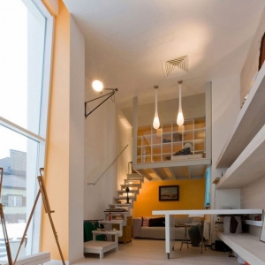 房屋建在一处陡峭的山坡上,外观独特,体现了设计师独具匠心的设计理念。底层与周围的山区景观融为一体,包括卧室和浴室。室内或房屋中庭都有楼梯或通道可通向底层。二层被设计成悬臂式结构,有一间宽敞的客厅,客厅里有壁炉和橱柜,还有通道可通向广阔的户外天台。室内设计风格前卫,设计师选择极简抽象派艺术风格的家具和品味高雅的饰物进行装饰。