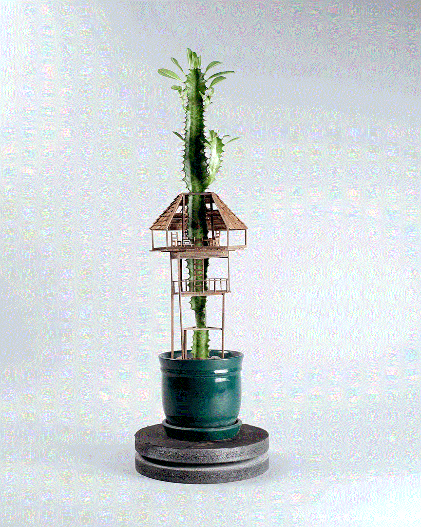 洛杉矶女艺术家Jedediah Corwyn Voltz的作品“微型树屋”可谓是鬼斧神工。而她所创作的平台,也只是自己的那些常见的植物或树木的盆景,其中缠绕的藤蔓也成了他新系列雕塑的小天地。 Jedediah Corwyn Voltz依靠自己十多年来电影及商业道具制作和其他工艺项目工艺的经验,对每个结构从头开始使用小块木头,丝绸面料,微型艺术品,半宝石等进行了精细的制作。 她一共设计和生产了约25个小场景,像从微小的瞭望塔到隐蔽的森林、繁华的风车到大气的水车轮。 如果你将在4月23号之前前往洛杉矶,不妨去Virgil Normal展览上看看她的作品吧!